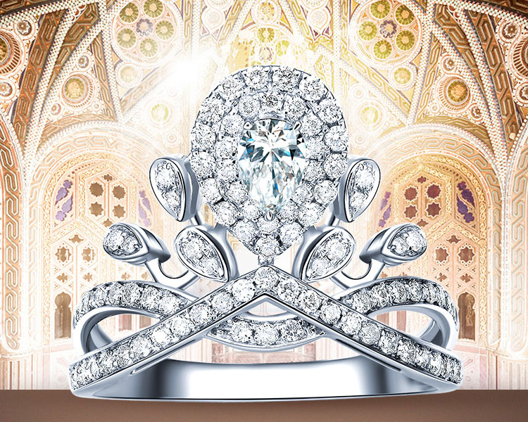 白18K金皇冠奢華群鑲求婚結婚女戒指水滴形大鑽戒女鑽石戒指